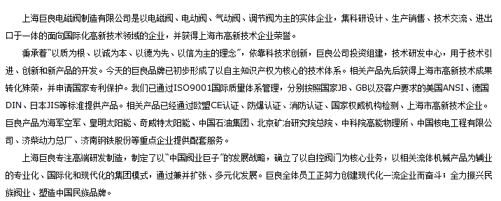 上海巨良電磁閥制造有限公司公司簡介,關(guān)于上海巨良電磁閥制造有限公司