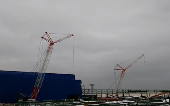 兩臺QUY260履帶吊完成廠房基礎(chǔ)建設(shè)最后吊裝工作,標(biāo)志著哈銅項目圓滿竣工