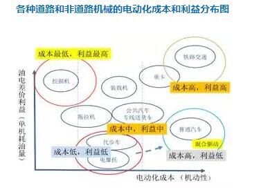 從圖上我們也發(fā)現(xiàn)一個過去沒有重視的地方,就是挖掘機。它其實應(yīng)該是電動經(jīng)濟(jì)效益最大,而成本最低的機械!