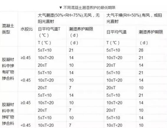 3.養(yǎng)護持續(xù)時間以規(guī)范中所規(guī)定的時間為最短時間,豎向混凝土結(jié)構(gòu)適當(dāng)增加養(yǎng)護時間,結(jié)合混凝土的組成及配合比、環(huán)境溫度與濕度、養(yǎng)護方法、風(fēng)力、風(fēng)速等諸多因素綜合考慮。