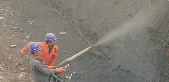 潮噴:是將骨料預(yù)加少量水,使之呈潮濕狀,再加水泥拌和,從而降低上料、拌和和噴射時的粉塵。但大量的水仍是在噴頭處加入和噴出的,其噴射工藝流程和使用機(jī)械同干噴工藝。目前施工現(xiàn)場較多使用的是潮噴工藝。