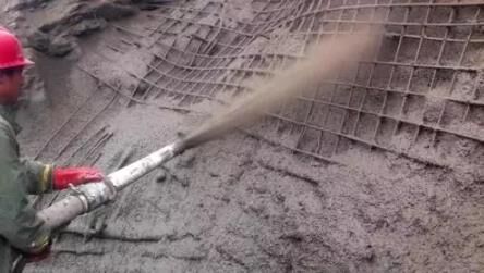 噴射混凝土是利用壓縮空氣,用壓力噴槍噴涂灌筑細(xì)石混凝土的施工法,將按一定配比的混凝土拌和料通過管道輸送并高速噴射到受噴面上凝結(jié)硬化,從而形成混凝土支護(hù)層。