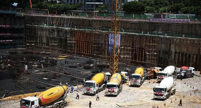 在??陔p子塔.南塔項目施工現(xiàn)場,中午氣溫32℃,體感氣溫41℃,頭戴“北京建工集團”安全帽和身穿“北京建工”反光馬甲的工作人員有條不紊的指揮著施工,幾十名建筑工人頭頂烈日揮汗如雨配合機器緊張地忙碌著,鏟車、挖掘機、裝載運輸車輛等重型機械來來往往,十余面標有“北京青年突擊隊”的戰(zhàn)旗迎風飄揚,一片緊張忙碌的大會戰(zhàn)景象。因為這次底板澆筑將持續(xù)96小時以上,這不僅是對混凝土的供應和澆筑工藝等是一次極大的挑戰(zhàn),也是對項目綜合管理能力的一次考驗。為此,北京建工集團為保障此次大體積混凝土澆筑順利,為了防止混凝土水發(fā)熱影響施工質(zhì)量,去年年初就與清華大學合作共同攻克難題,同時項目部多次組織工程技術人員和現(xiàn)場施工人員召開專項方案會議,安排交底工作,詳細講解澆筑方案,安排布置施工組織計劃、施工準備、主要施工方法及技術措施、混凝土的供應、澆筑順序、養(yǎng)護及測溫等工作,海口塔項目部為澆筑底板工程共投入6個攪拌站、5臺車載泵、7處溜管、240輛混凝土運輸車,并配備1個備用攪拌站和33輛備用混凝土運輸車,并進行分工責任到人。據(jù)悉在底板混凝土澆筑期間期間,將對國興大道、五指山南路等施工車輛途經(jīng)路段造成交通壓力,本次澆筑得到了海口市政府和交通大隊的大力支持,他們專門為混凝土運輸車開通了綠色通道,辦理了特別通行證,出動警力維護交通,在降低對市民出行的影響同時,保證混凝土車輛順利運輸。澆筑期間,正值海南高溫天氣,項目后勤保障部門在原有基礎上增設防暑降溫救援點,在施工過程中24小時保證不間斷供應綠豆湯、藿香正氣水等。