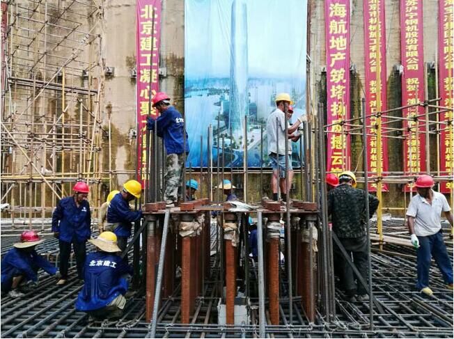 7月9日,由北京建工集團施工的428米的海南第一高樓——??陔p子塔?南塔工程塔樓筏板基礎單次9.6萬噸近4萬方混凝土澆筑施工任務拉開序幕。下午13時36分,海航地產(chǎn)總裁楊猛先生一聲令下,第一車混凝土通過溜槽奔馳而下,??陔p子塔?南塔大體積混凝土澆筑正式開始,全球六大傳媒集團之一Havas、央視9頻道、鳳凰網(wǎng)等多家媒體親臨現(xiàn)場實況轉播報道這項“超級工程”。