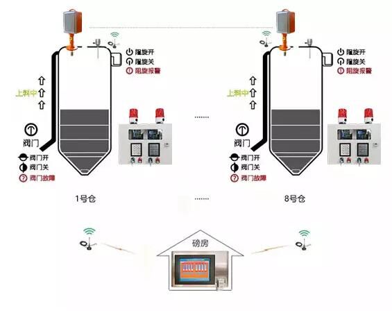 終端集成了料位報(bào)警功能,實(shí)現(xiàn)了一對(duì)一的料位報(bào)警;