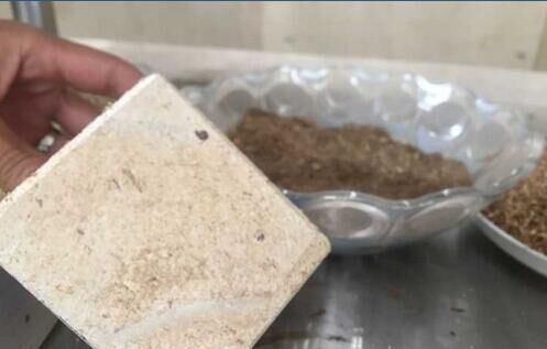 上生產(chǎn)出來的鋼鈣秸稈實(shí)心墻板已擺放得整整齊齊?!斑@些機(jī)器‘吃’進(jìn)去的是秸稈,‘吐’出來的是墻板,正適合當(dāng)作建筑外墻屋面材料?!痹摴窘?jīng)理文華銀拿出了一塊墻板樣品,側(cè)切面能清晰地看到秸稈碎屑。盡管摸上去第一感覺像木頭,但用手使勁兒敲打卻能感受到足夠的硬度,“每平米墻板所含的秸稈能達(dá)到60%至80%?!?