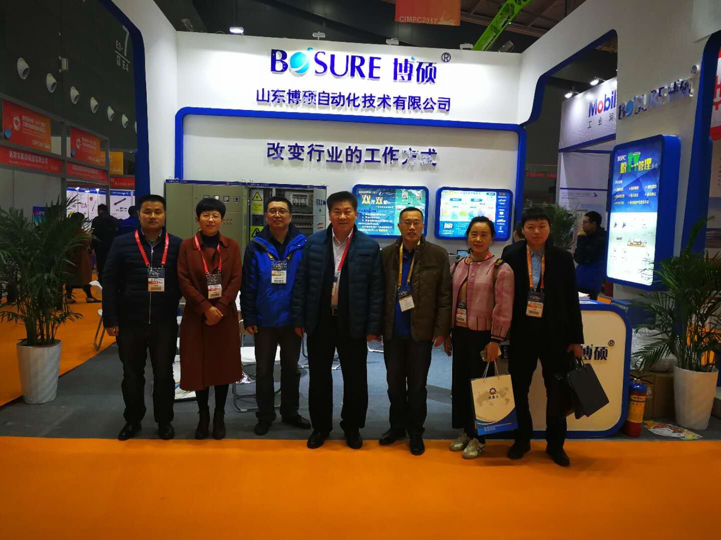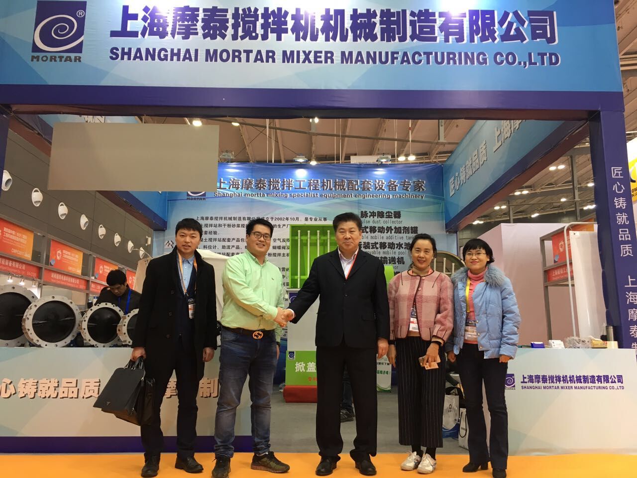 在2017長沙配博會上中國工程機械工業(yè)協(xié)會混凝土機械分會符忠軒會長及秘書長易君在砼商網劉娟女士的陪同下走訪參展會員單位。