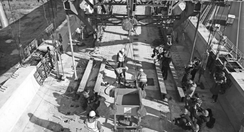 架設(shè)第一片U形梁。