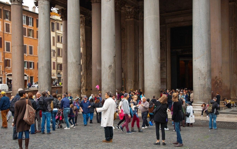 在羅馬市中心,有一個(gè)中央豎立著高大的尖頂方碑的噴水池,方碑基座雕有古羅馬神話場(chǎng)景,這一噴水池所在地就是羅馬萬(wàn)神殿的前庭。它是至今完整保存的唯一一座羅馬帝國(guó)時(shí)期建筑