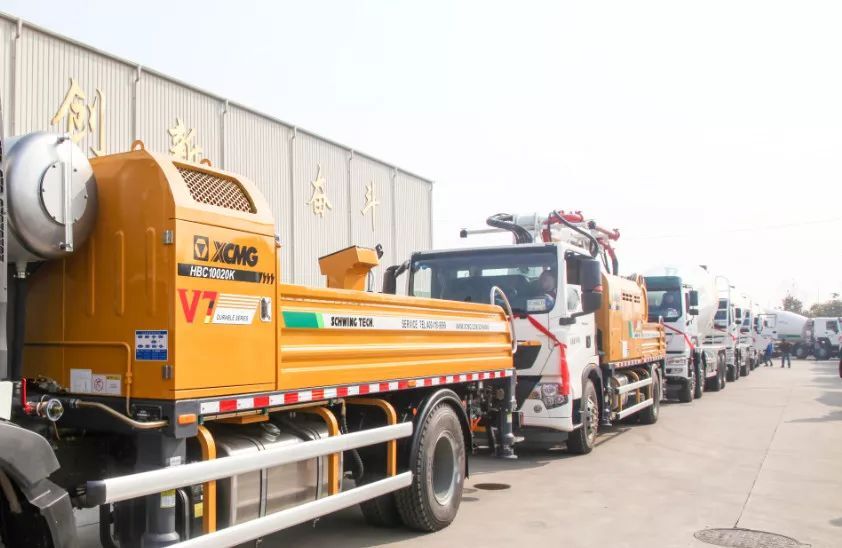 此次發(fā)車的V7系列產(chǎn)品涵蓋泵車、車載泵、拖泵、攪拌車、攪拌站等成套混凝土機(jī)械設(shè)備,共100余臺(tái),發(fā)往全國(guó)各地和海外,為全球基礎(chǔ)建設(shè)貢獻(xiàn)力量。