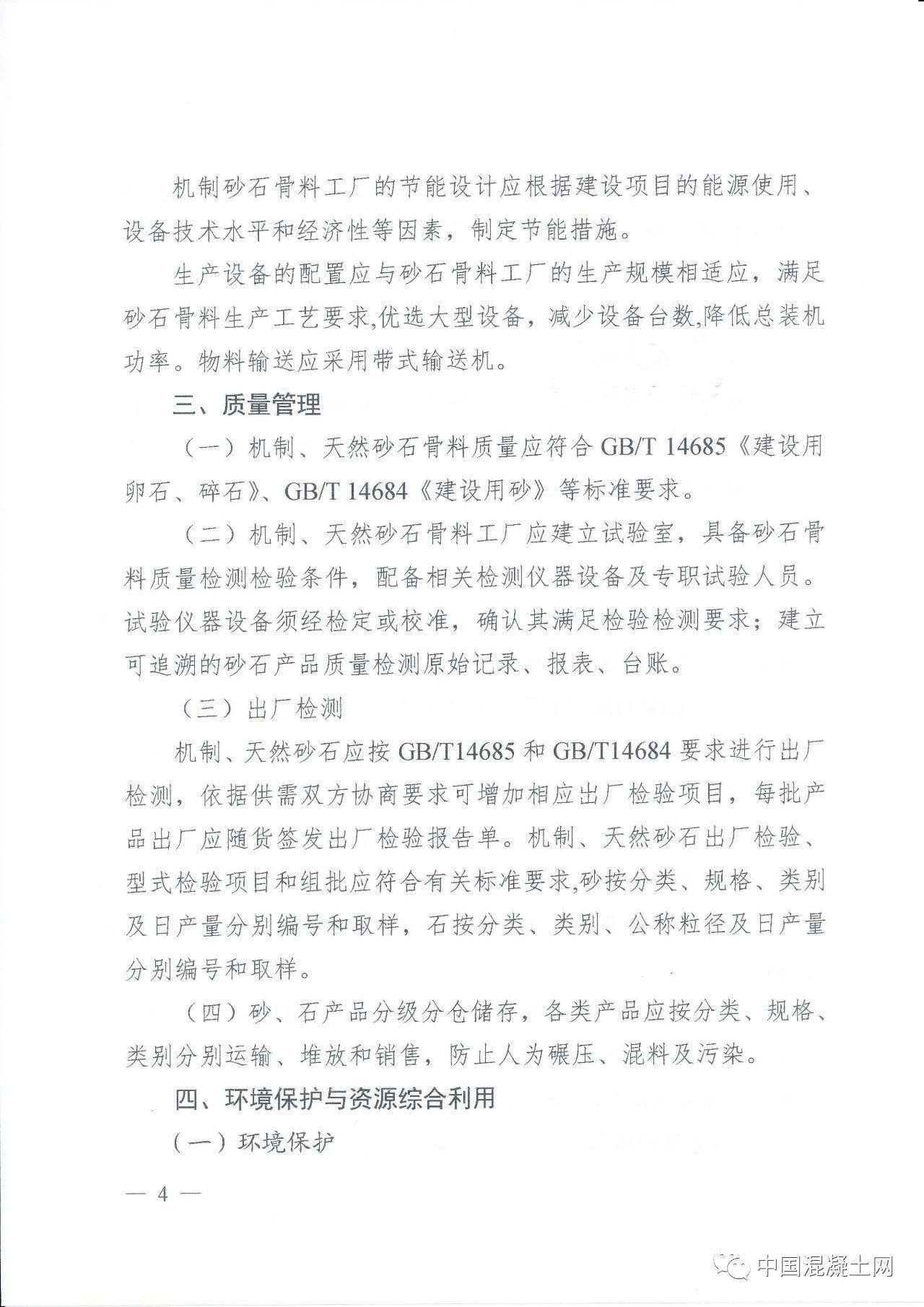 答:為推進(jìn)砂石骨料產(chǎn)業(yè)結(jié)構(gòu)優(yōu)化與規(guī)范管理,加強機(jī)制砂質(zhì)量控制,《規(guī)范條件》對砂石骨料企業(yè)提岀了有關(guān)要求,共分七章:規(guī)劃布局和建設(shè)要求、工藝與裝備、質(zhì)量管理和產(chǎn)品質(zhì)量、環(huán)境保護(hù)與資源綜合利用、安全生產(chǎn)與社會責(zé)任、監(jiān)督管理和附則。