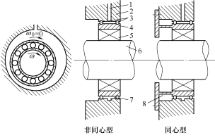 6. 軸 7. 間隙油膜 8. 定心彈簧