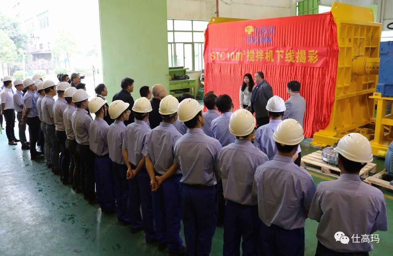 2018年4月18日,珠海仕高瑪公司10立方攪拌機(jī)下線揭彩儀式暨攪拌技術(shù)研討會(huì)在珠海仕高瑪公司舉行,中國工程機(jī)械協(xié)會(huì)混凝土機(jī)械分會(huì)符忠軒會(huì)長、長安大學(xué)馮忠緒教授、趙利軍博士、廣東長大公路工程公司楊東來總工程師、河南萬里路橋李冠峰總工程師、許昌德通特種混凝土公司孟超總經(jīng)理等領(lǐng)導(dǎo)、專家和嘉賓應(yīng)邀出席儀式和研討會(huì),珠海仕高瑪公司股東黃志輝先生、意大利SICOMA公司董事長Mr. Galletti、總工程師Marco、珠海仕高瑪公司總經(jīng)理郗俊峰先生、財(cái)務(wù)總監(jiān)唐志敏女士及公司技術(shù)研發(fā)團(tuán)隊(duì)、生產(chǎn)團(tuán)隊(duì)、銷售團(tuán)隊(duì)、售后團(tuán)隊(duì)參加本次活動(dòng)。