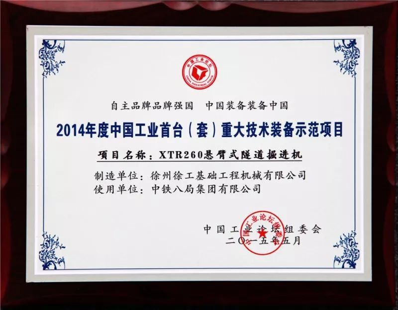 2014年6月,國(guó)內(nèi)首臺(tái)懸臂式隧道掘進(jìn)機(jī)徐工XTR260研制成功,在大連等地進(jìn)行隧道施工,有效提升了隧道施工質(zhì)量和效益,促進(jìn)國(guó)內(nèi)隧道施工模式的轉(zhuǎn)變,填補(bǔ)國(guó)內(nèi)懸臂式隧道掘進(jìn)機(jī)的空白;經(jīng)中國(guó)機(jī)械工業(yè)聯(lián)合會(huì)組織鑒定,其主要技術(shù)性能達(dá)到國(guó)際領(lǐng)先水平,該設(shè)備獲得江蘇省首臺(tái)套重大裝備認(rèn)定和資金支持,為2014年度中國(guó)工業(yè)首臺(tái)(套)重大技術(shù)裝備示范項(xiàng)目。