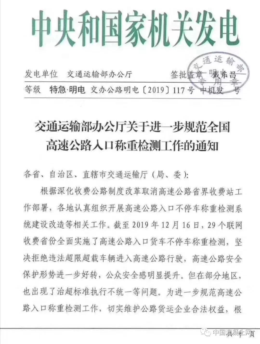 12月17日,交通運(yùn)輸部辦公廳發(fā)布特急文件《關(guān)于進(jìn)一步規(guī)范全國(guó)調(diào)整公路入口稱重檢測(cè)工作的通知》(交辦公路明電【2019】117號(hào))(以下簡(jiǎn)稱“《通知》”)。《通知》直指全國(guó)部分地區(qū)治超標(biāo)準(zhǔn)不統(tǒng)一的問題。為進(jìn)一步規(guī)范高速公路入口稱重檢測(cè)工作,切實(shí)維護(hù)公路貨運(yùn)企業(yè)合法權(quán)益,根據(jù)相關(guān)法律法規(guī)和規(guī)定,有關(guān)通知如下: