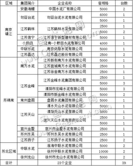我省境內涉及熟料生產(chǎn)的23家企業(yè)、39條生產(chǎn)線,年熟料產(chǎn)能大約5500萬噸,具體情況見下表。