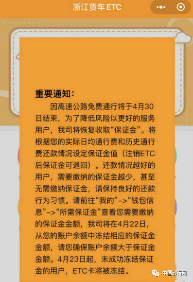 同日,浙江貨車ETC首頁(yè)發(fā)布通知,表示高速公路免費(fèi)通行將于4月30日結(jié)束。