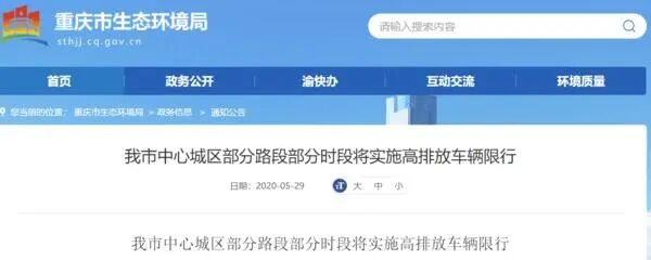 重慶:6月20日起國三車限行
