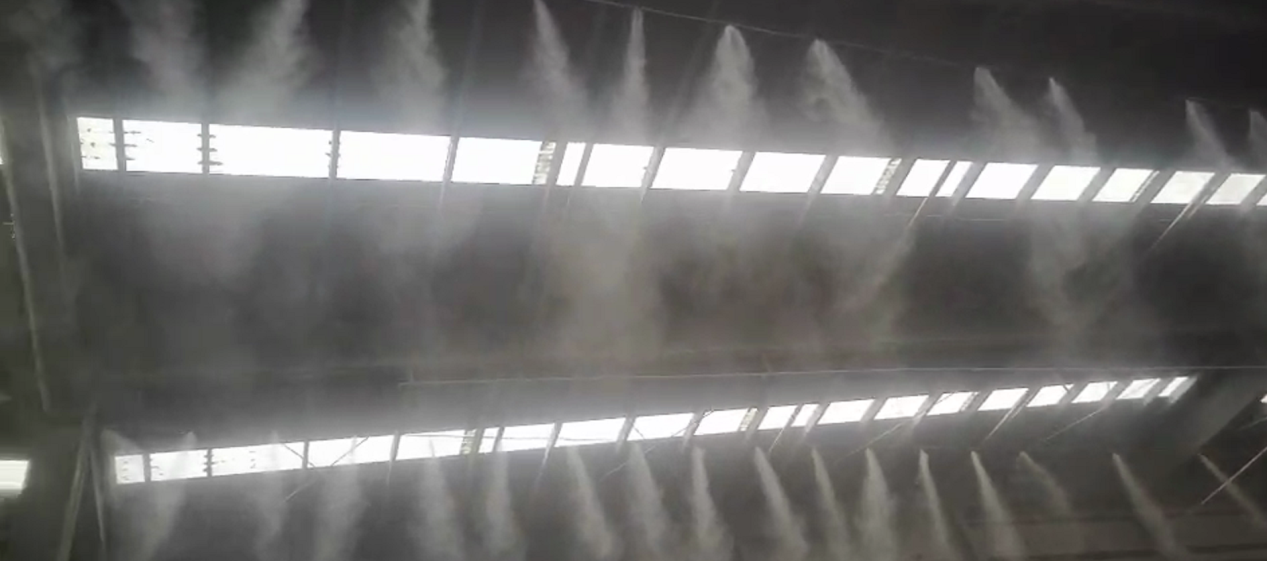 料場(chǎng):在混凝土攪拌站中料場(chǎng)是最容易產(chǎn)生粉塵的地方,對(duì)料場(chǎng)進(jìn)行整體封裝,完全隔離粉塵,防止向周邊環(huán)境擴(kuò)散。同時(shí)配置料場(chǎng)霧化噴淋,將經(jīng)過(guò)凈化過(guò)濾后的水高壓霧化,在運(yùn)動(dòng)中對(duì)懸浮在空氣中的粉塵進(jìn)行有效的吸附,從而抑制塵埃擴(kuò)散。