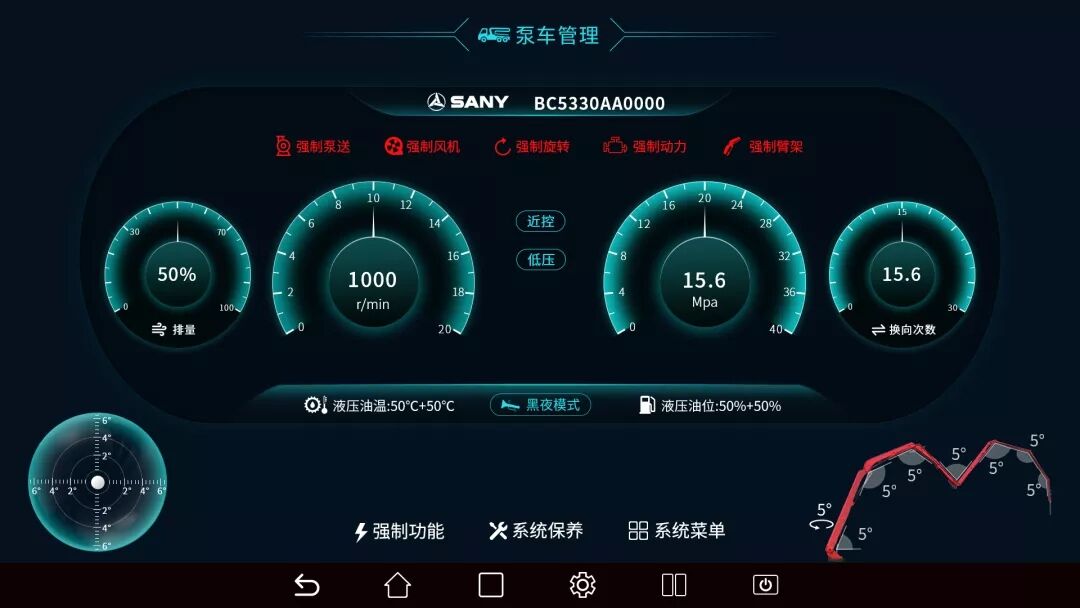 除了柔和模式省油之外,S系列泵車在爬坡時(shí)也更有勁,而且油耗并沒(méi)有增加。
