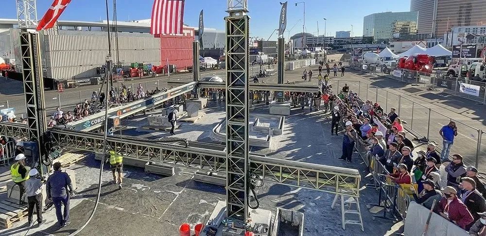 2022 年 2 月,COBOD International 與材料供應(yīng)商 Quikrete 和開(kāi)發(fā)商 We Print Homes 在拉斯維加斯混凝土世界大會(huì)上在現(xiàn)場(chǎng)觀(guān)眾面前進(jìn)行了為期三天的 3D 打印混凝土(來(lái)源:COBOD)