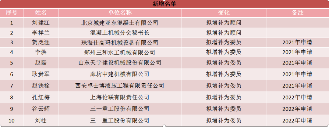 2022年4月29日經(jīng)混凝土機械分會理事會決議,團標委員增補10人,變更2人,取消2人。委員人數(shù)由31人調整至39人。