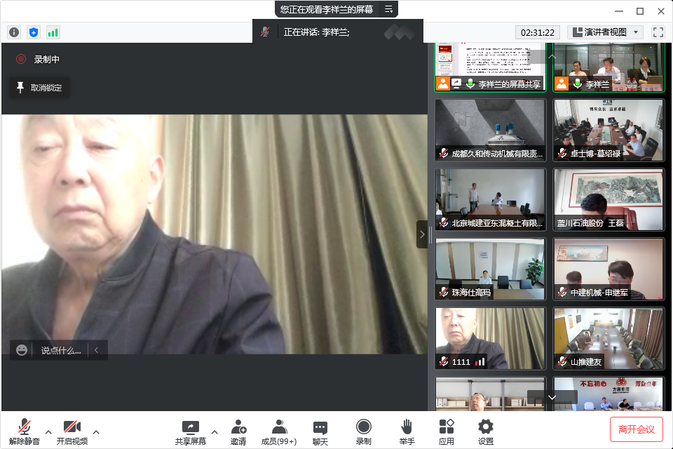 混凝土機械分會的年會還得到很多行業(yè)老前輩,專家、高工、行業(yè)精英的關注和支持,在自由交流環(huán)節(jié),中國工程機械工業(yè)協(xié)會名譽會長祁俊祁會長也發(fā)言祝賀,首先祝賀大會線上會議開的非常成功,他呼吁現(xiàn)在中國混凝土機械在全世界已占主導地位,站在領跑位置,肯定了行業(yè)的領先性,但由于各種因素的疊加,行業(yè)也到了最困難的時候,協(xié)會要增加上下游的互動,爭取支持,抱團取暖,希望混凝土機械在工程機械整個領域大家共同進步,相互幫扶渡過難關。