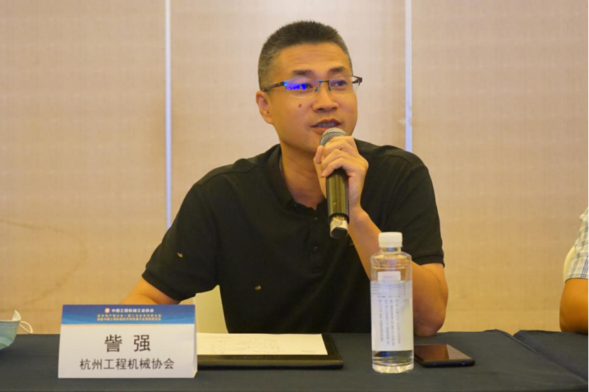 杭州市工程機械設(shè)備行業(yè)協(xié)會理事長訾強對杭州協(xié)會情況和背包客、配件店現(xiàn)狀情況進行了介紹。
