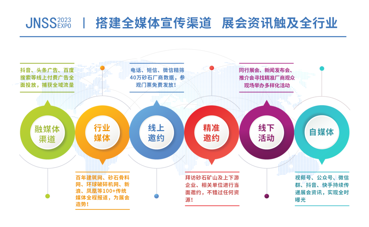 2023濟(jì)南砂石招展將持續(xù)加強(qiáng)宣傳力度,匯集線上線下、全方位、多角度優(yōu)質(zhì)買家,助推展商品牌打造與貿(mào)易合作。