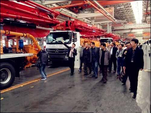 25日上午,考察團(tuán)全體成員在三一重工一號(hào)會(huì)議室召開了2014年度山東省混凝土協(xié)會(huì)會(huì)長(zhǎng)工作會(huì)議,三一重工泵送營銷公司副總經(jīng)理王暾先生致歡迎詞,會(huì)議對(duì)2014年全年工作進(jìn)行部署、攪拌站評(píng)優(yōu)等問題展開討論。12點(diǎn)40分,考察團(tuán)參觀了三一產(chǎn)業(yè)園,一進(jìn)廠區(qū),一排排鮮紅锃亮的混凝土泵車像是巨人般列隊(duì)歡迎,亞洲最大的花園式18號(hào)廠房、一塵不染的總裝車間、豐富多彩的企業(yè)文化、振奮人心的發(fā)展前景,讓考察團(tuán)領(lǐng)導(dǎo)班子頻頻點(diǎn)贊,感嘆三一不愧為世界級(jí)工程機(jī)械制造商,充分肯定了三一重工在混凝土行業(yè)中的龍頭地位。參觀后,考察團(tuán)集體合影留念。