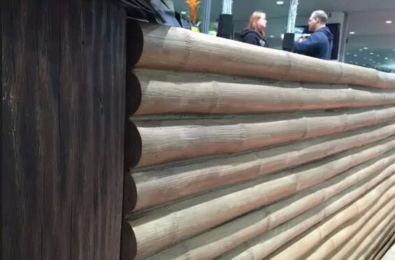 這個“木”圍欄看上去很普通,立柱是裝飾“石材”,其實全部都是混凝土制作,包括頂上的圓球。混凝土制作的“竹子”墻和“方木”立柱。