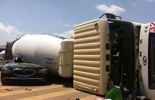 4月8日中午,昆明市經(jīng)開區(qū)景明北路與陽春大道路口發(fā)生一起交通事故:一輛混凝土攪拌車在行駛中與一輛寶馬7系轎車發(fā)生碰撞后失控側(cè)翻,寶馬車的整個左半邊被全部壓垮。經(jīng)現(xiàn)場交警和消防官兵全力救援,寶馬車駕駛員被救出,確定已不幸身亡。