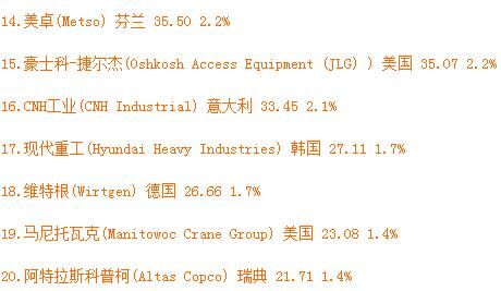 從表單中不難看出,卡特彼勒、小松的世界排名相對穩(wěn)定,仍然位居第一、第二名。其中卡特彼勒占總市場收入的18.1%。較之2015年,特雷克斯上升兩個(gè)名次,位居第三位。特雷克斯取代日立排名第三,日立建機(jī)排名第四,利勃海爾位列第五,沃爾沃排名第六。除此之外,斗山和杰西博分別上升兩個(gè)名次,擠進(jìn)前十名。