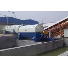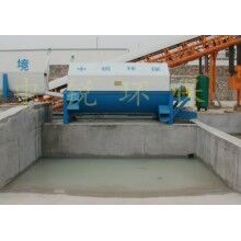 該系統(tǒng)主要由:攪拌車加水清洗裝置,溜槽輸送裝置,砂石漿水分離裝置,和泥漿水后處理裝置組成?;炷凛斔驮O(shè)備清洗后,將殘余混凝土排入溜槽中,在高壓水流沖擊下,經(jīng)溜槽進(jìn)入砂石分離機(jī),在不斷旋轉(zhuǎn)的分離機(jī)作用下,對(duì)混凝土進(jìn)行充分的清洗,同時(shí)將砂、石進(jìn)行分離,分離后的砂、石在導(dǎo)料葉片的作用下背向流動(dòng),再通過提升式出料口排出分離機(jī),分別堆放。清洗后的漿水從分離機(jī)的底部排出進(jìn)入沉淀池逐級(jí)沉淀后循環(huán)使用或進(jìn)入攪拌池回收利用。進(jìn)入攪拌池(一般情況2個(gè)攪拌池)的漿水為了防止沉淀凝固,需通過攪拌器的作用,攪拌器的工作為間歇式。分離出水泥漿在連續(xù)的攪拌器作用下,再通過高壓污水泵輸送到攪拌樓中待生產(chǎn)計(jì)量再利用。整個(gè)控制系統(tǒng)設(shè)有手動(dòng)和自動(dòng)控制,方便控制設(shè)置,整個(gè)系統(tǒng)運(yùn)行可靠,故障率低,維護(hù)量少等特點(diǎn)。