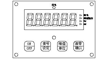 按鍵從左至右依次為“ON/OFF”、“+”、“-”、“ENTER/ZERO”;上部LCD顯示的五位數(shù)字為索拉力,單位為、旋緊手輪至鋼索頂?shù)较尬患达@示鋼索拉力