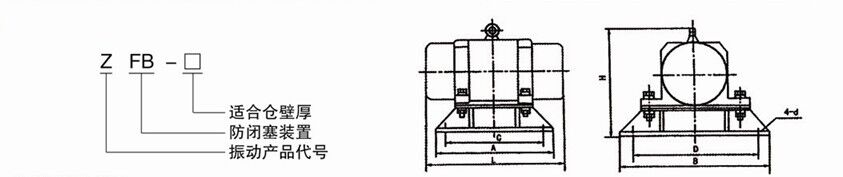ZFB系列倉壁振動(dòng)器外型尺寸表: