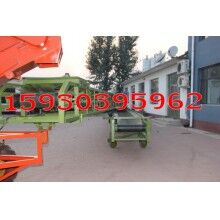 組合形式為:底盤有駕駛室和方向盤,有自動行走功能;扒谷機安裝在底盤前部,可升降;組合輸送機安裝在底盤后部,可相對底盤左右旋轉,輸送機部分又分為上下兩層輸送機,上層輸送機的終端用轉盤和跑輪與下層輸送機連接,兩者可相對旋轉和移動,扒谷機部分又可以和上層輸送機90度范圍內轉向。