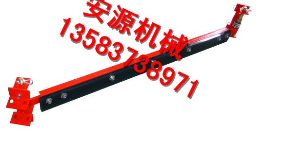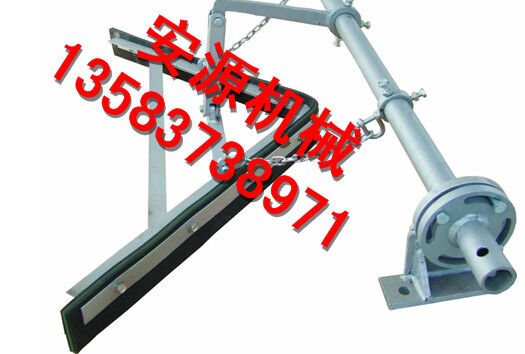 在正機(jī)安裝時(shí),首先確定好安裝位置,將前吊桿焊在清掃器三角板上,再將橫粱焊在機(jī)架上,前吊桿調(diào)正螺絲頂在橫梁上,調(diào)正刮板與膠帶距離,后吊環(huán)角鐵焊在機(jī)架槽綱下面,吊著清掃器尾部,自動調(diào)正清掃器