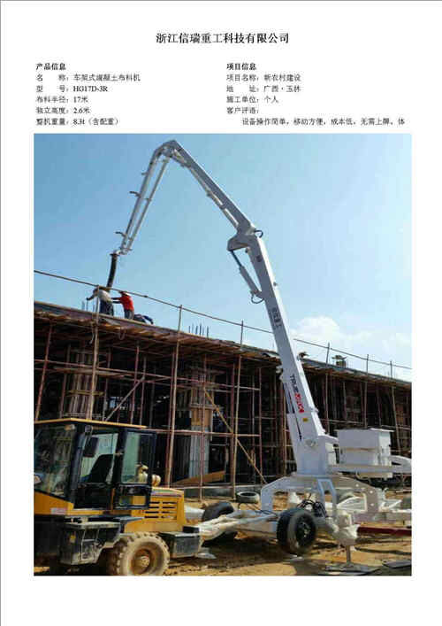 歸屬行業(yè):信瑞重工HG17D-3R車架式混凝土布料機(jī)