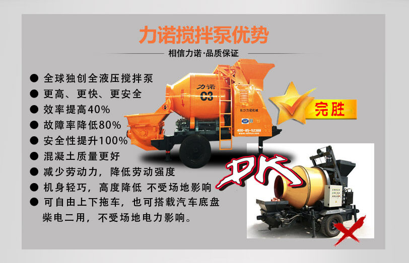 力諾混凝土攪拌泵送一體機(jī)攪拌地泵在功能上,表現(xiàn)出卓越的技術(shù),該設(shè)備能實(shí)現(xiàn)混凝土攪拌和高壓泵送一步到位,每小時(shí)可生產(chǎn)混凝土15-25立方,廣泛適用隧道、房屋建設(shè)、礦洞、水利等基礎(chǔ)設(shè)施,可滿足各種復(fù)雜施工工況,有效的節(jié)省了人工,降低了工作強(qiáng)度,節(jié)省了成本。200mm的輸送缸缸徑,能輸送2-4公分的石料,吸料性好、吸料滿、更稠、更均勻。對(duì)施工的原料局限性少。