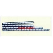 高強(qiáng)度不銹鋼穿條由19根不銹鋼絲以特殊的多層纏繞方式紡織成軟軸,外纏以1mm厚高強(qiáng)耐磨不銹鋼皮精制而成。該串條具有抗拉強(qiáng)度大、壽命長的優(yōu)點(diǎn)。