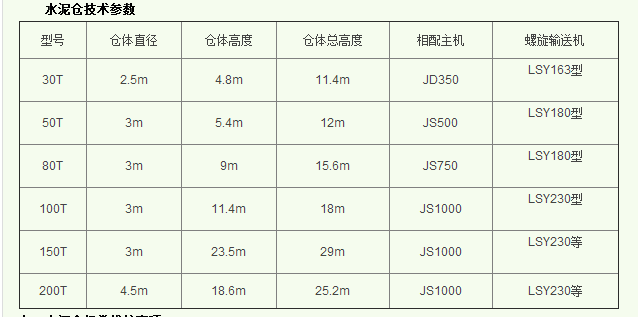3.水泥倉(cāng)(罐)適用于裝散裝水泥及干造的粉煤灰,具有防雨,防潮,使用方便等特點(diǎn):一般有50t,100t,200t,300t,