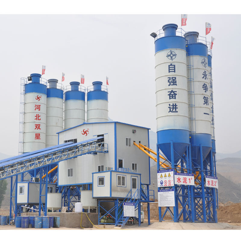 1.河北雙星HZS90混凝土攪拌站,該套混凝土攪拌站設(shè)備主機(jī)可配JS1500雙臥軸強(qiáng)制式混凝土攪拌機(jī)或進(jìn)口混凝土攪拌機(jī)。主機(jī)配有收塵機(jī),具有自動(dòng)收塵、去濕、排風(fēng)、將收集的粉塵向主機(jī)回送再利用的功能。收塵效果 極佳 。水泥倉頂裝有圓筒式收塵機(jī),除塵效率高、噪音低。主機(jī)架采用彩鋼板包裝,整潔、美觀、防塵,具有 良好的 視野。雙帖合并安裝,既方便操作又節(jié)約場地。