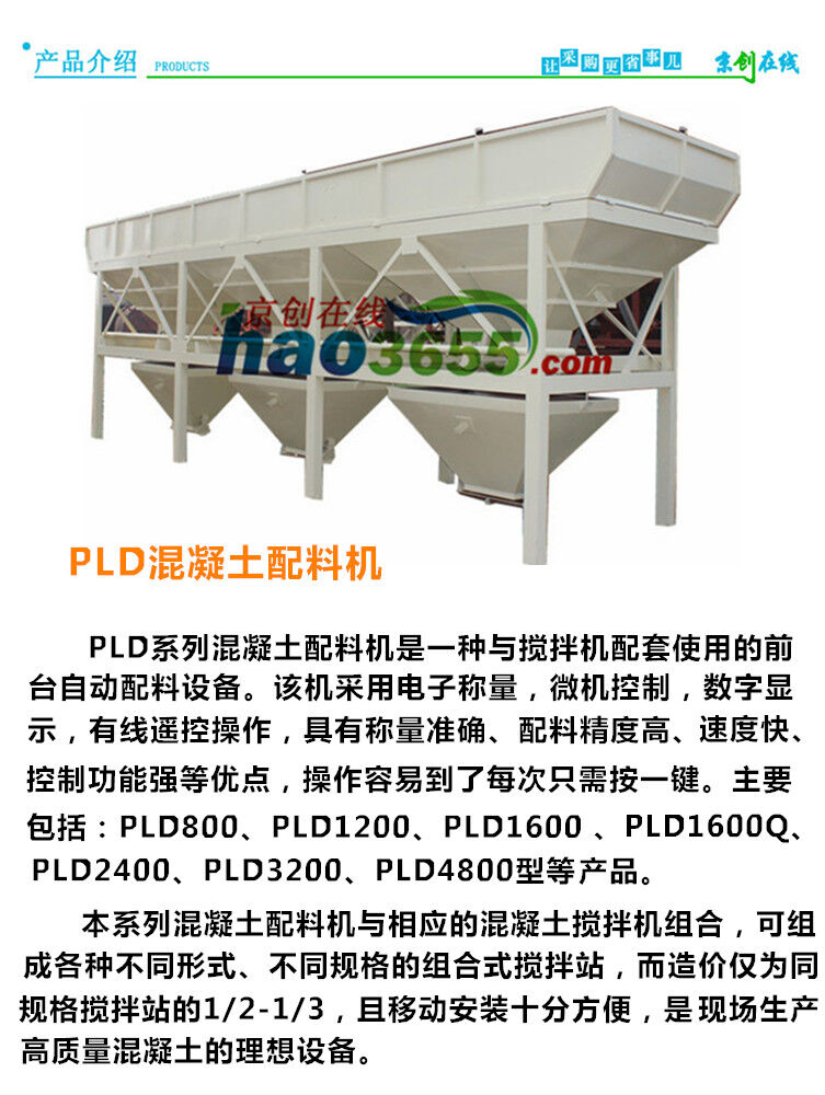 1、按所匹配攪拌機(jī)型號(hào)分為:PLD800混凝土配料機(jī)、PLD1200混凝土配料機(jī)、       PLD1600混凝土配料機(jī)、PLD2400混凝土配料機(jī)、PLD3200混凝土配料機(jī)、       PLD4800混凝土配料機(jī);