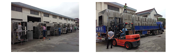 6、設(shè)備占地面積小,自重輕:適合于布置緊湊、場地狹小等特殊條件,設(shè)備占地面積<1平方米/處理10000M3/H風量。