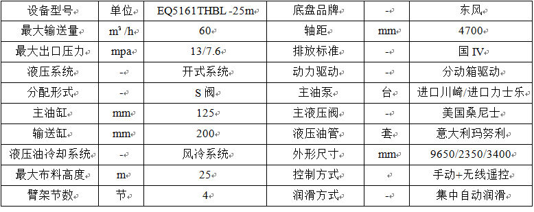 攪拌一體臂架泵車基本配置表
