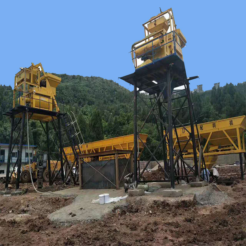 HZS35混凝土攪拌站攪拌主機(jī)及骨料提升采用JS750雙臥軸強(qiáng)制式攪拌機(jī),骨料配料部分采用PLD1200型混凝土配料機(jī),裝載機(jī)上料,電子秤計(jì)量;水泥由水泥倉儲(chǔ)存,螺旋輸送機(jī)輸送,水泥秤計(jì)量;水由水箱和蓄水池儲(chǔ)存,水泵供水,水秤計(jì)量。液體外加劑在外加劑儲(chǔ)存箱中攪拌均勻后,由耐蝕泵送入外加劑秤進(jìn)行計(jì)量。整個(gè)配料與攪拌全過程由電控系統(tǒng)控制自動(dòng)完成(也可進(jìn)行手動(dòng)控制),控制系統(tǒng)可存儲(chǔ)多個(gè)不同的混凝土配比供用戶隨時(shí)調(diào)用。該站結(jié)構(gòu)簡單,安裝調(diào)試方便,系統(tǒng)配置先進(jìn),計(jì)量和控制系統(tǒng)采用進(jìn)口元件,工作可靠性高。