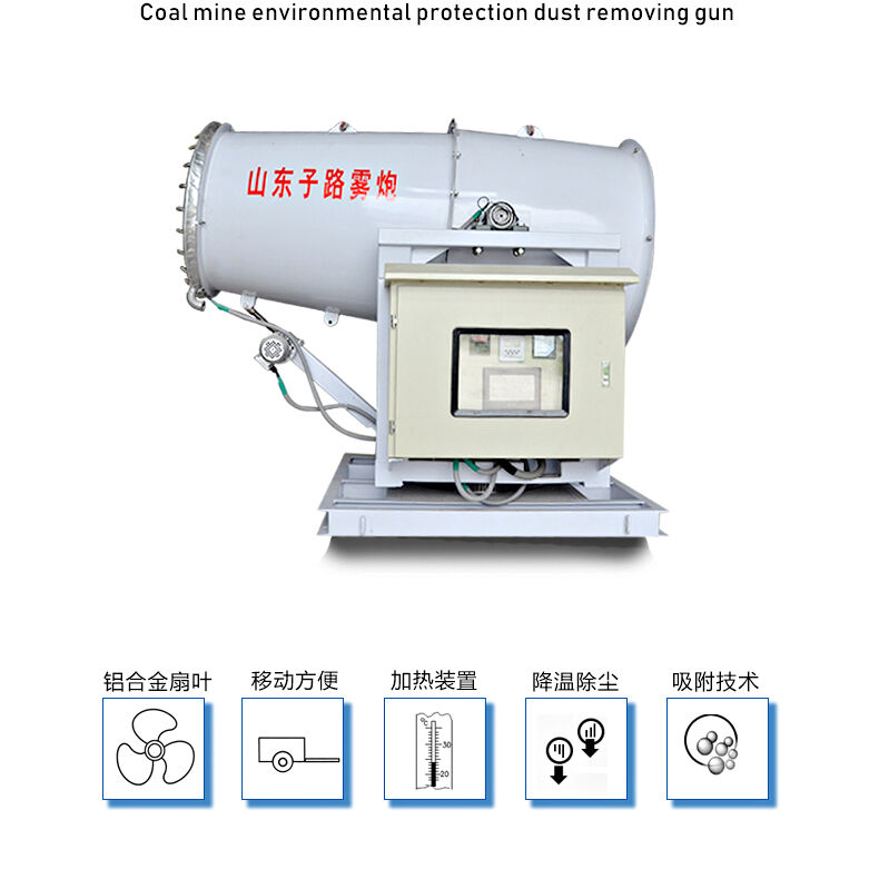 子路環(huán)??萍加邢薰疽豢钔ㄟ^(guò)高壓風(fēng)機(jī)將儲(chǔ)存的水壓縮成灰塵大小,在利用不銹鋼噴嘴部位將水霧化吹向高空凈化空氣的一種新型環(huán)保除塵產(chǎn)品。這款產(chǎn)品名字叫高射程霧炮機(jī),