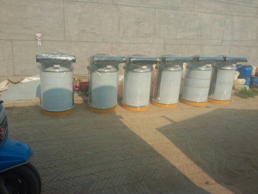 倉頂單機除塵器的結(jié)構(gòu):倉頂單機除塵器是一種圓形可拆的金屬濾筒,底板上有14個嵌入圓形孔,它設有14個濾芯,扎緊在上端1個振動器的吊架上,定時震動,使濾芯阻留下來的灰塵降落在倉內(nèi)。