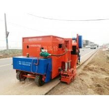 4.發(fā)動路緣石機,左前輪對準墨線,均勻地將拌和料鏟入料斗,機械開始滑模施工工作;